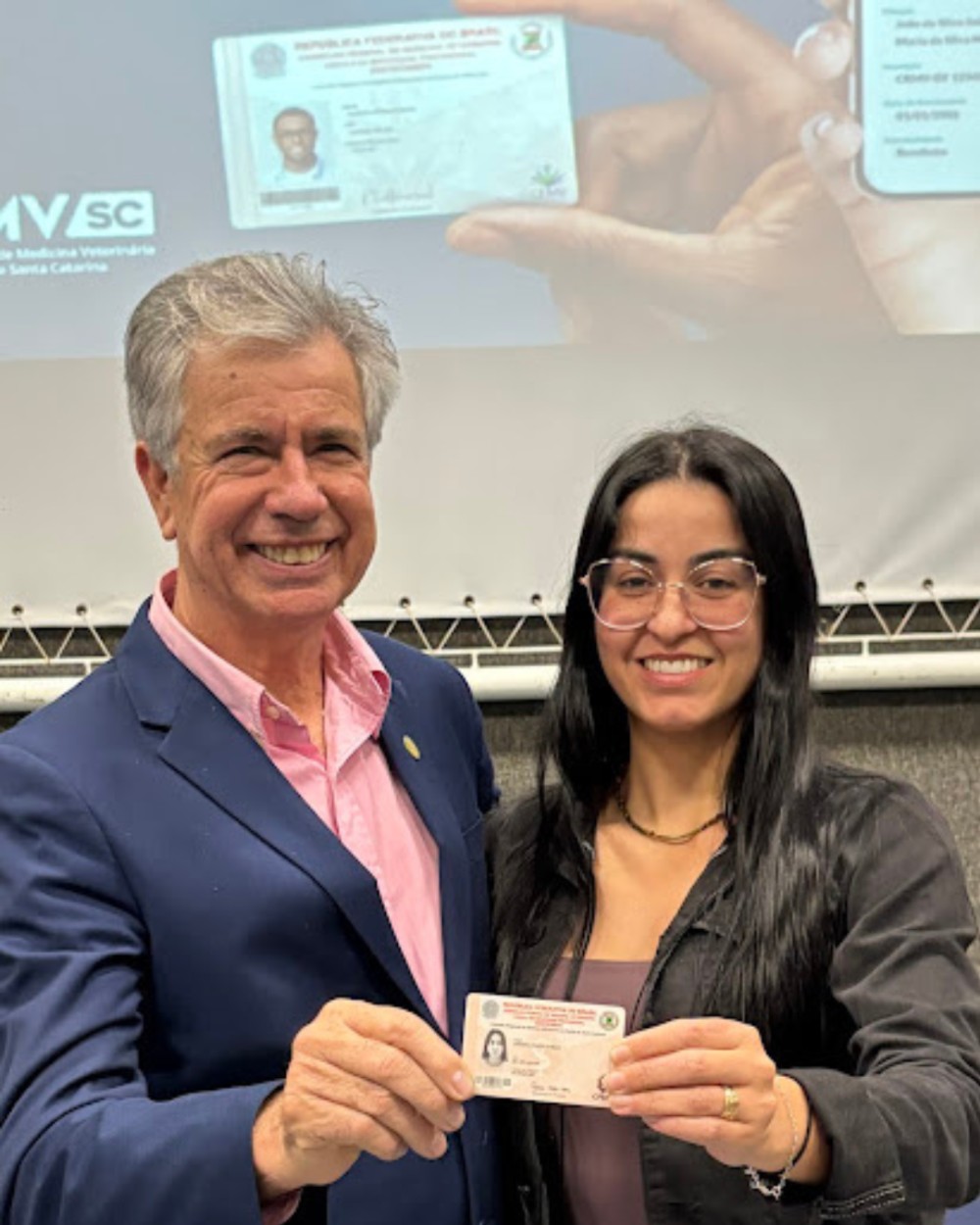 A cédula profissional, na versão física, foi entregue para médicos-veterinários e zootecnistas recentemente inscritos no Conselho Regional de Medicina Veterinária de Santa Catarina (CRMV-SC).
