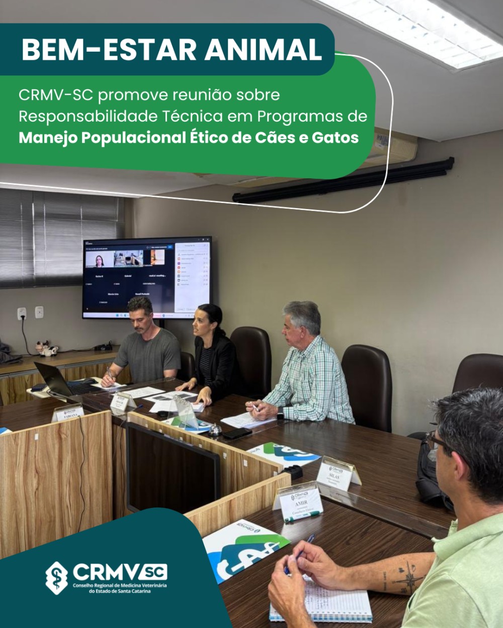 Com o objetivo de reforçar o bem-estar animal e o cumprimento das diretrizes técnicas e éticas que norteiam os Responsabilidade Técnica em Programas de Manejo Populacional Ético de Cães e Gatos em Santa Catarina, o CRMV-SC promoveu uma reunião com profissionais e representantes de instituições que atuam neste segmento. Durante a conversa, o presidente do CRMV-SC, Moacir Tonet, ressaltou a importância de que estas campanhas sejam planejadas com responsabilidade técnica efetiva, garantindo que cada etapa do processo ocorra de maneira ética e segura.