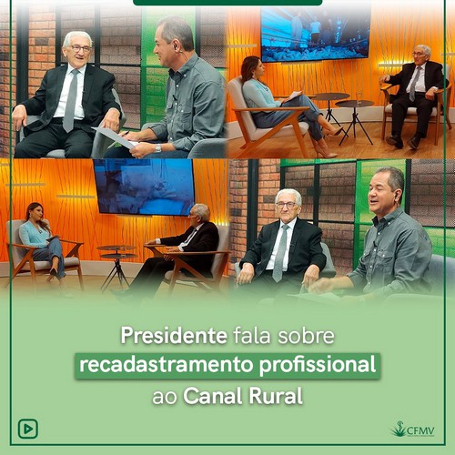 Em entrevista aos programas Giro do Boi e Ligados e Integrados, do Canal Rural, o presidente do Conselho Federal de Medicina Veterinária (CFMV), Francisco Cavalcanti de Almeida, alertou sobre a campanha de recadastramento profissional que está ocorrendo de forma on-line desde o início do ano.