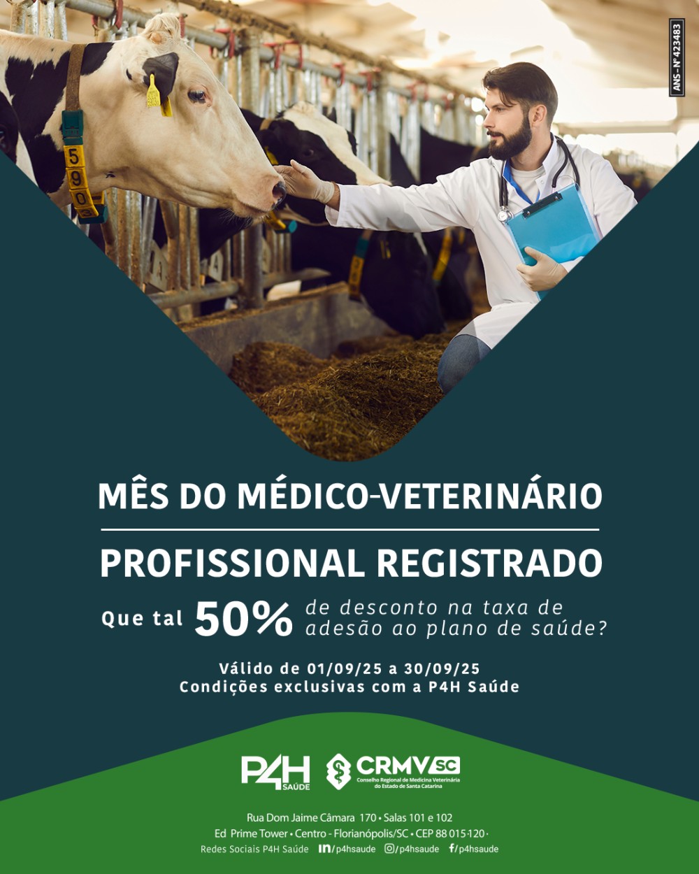 A iniciativa é resultado da parceria entre o CRMV-SC e a P4H, administradora do convênio, que possibilita aos profissionais da Medicina Veterinária, da Zootecnia e seus dependentes, acesso facilitado a uma ampla rede de serviços em saúde, garantindo mais qualidade de vida e segurança para si e suas famílias.